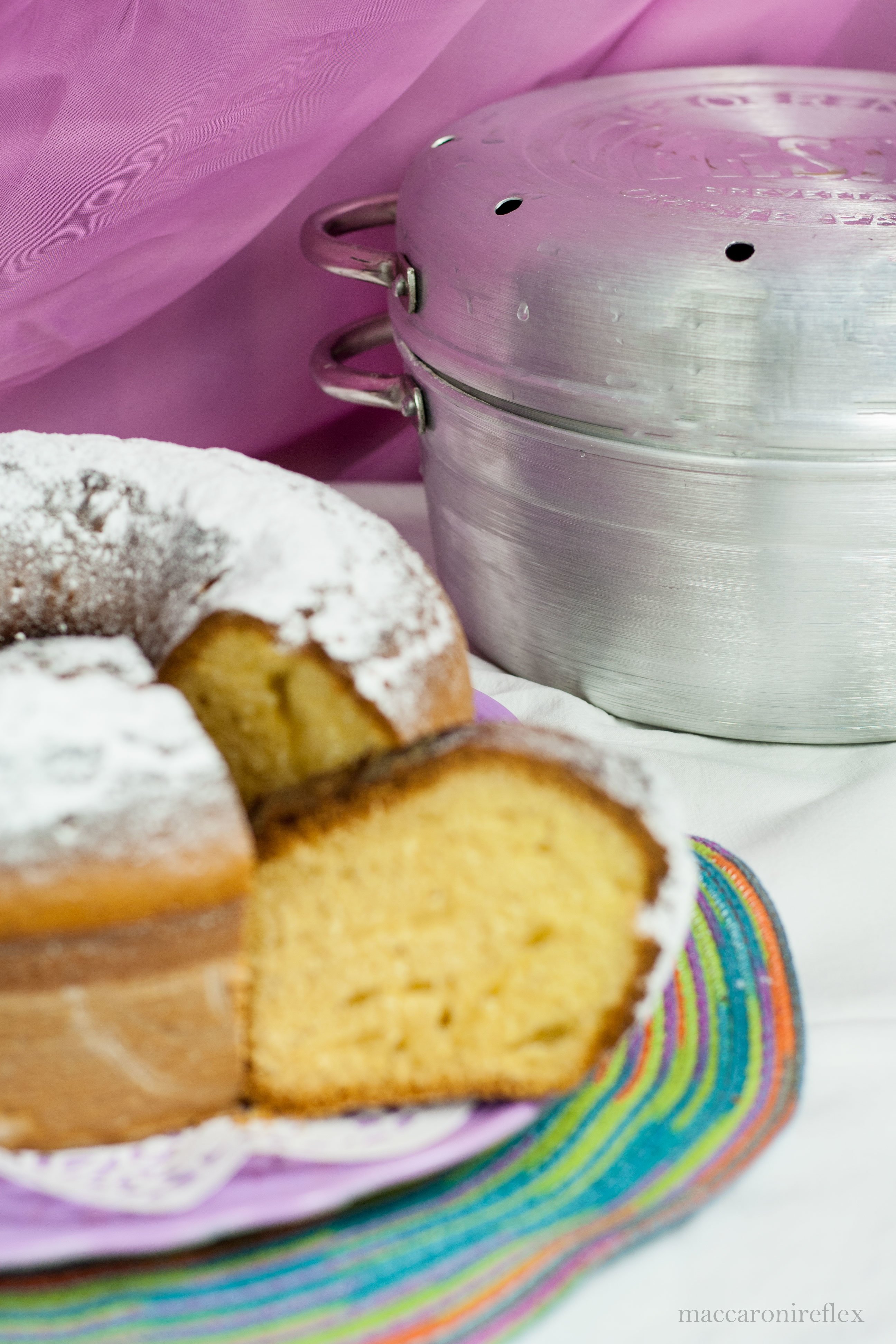 Ed ecco, come primissima ricetta con la Pentola Fornetto Versilia, un classico ciambellone perfetto per la colazione, che nel sapore e nel profumo, come ha sottolineato la mia mamma, ricorda l’infanzia e le torte di mamma e nonna.