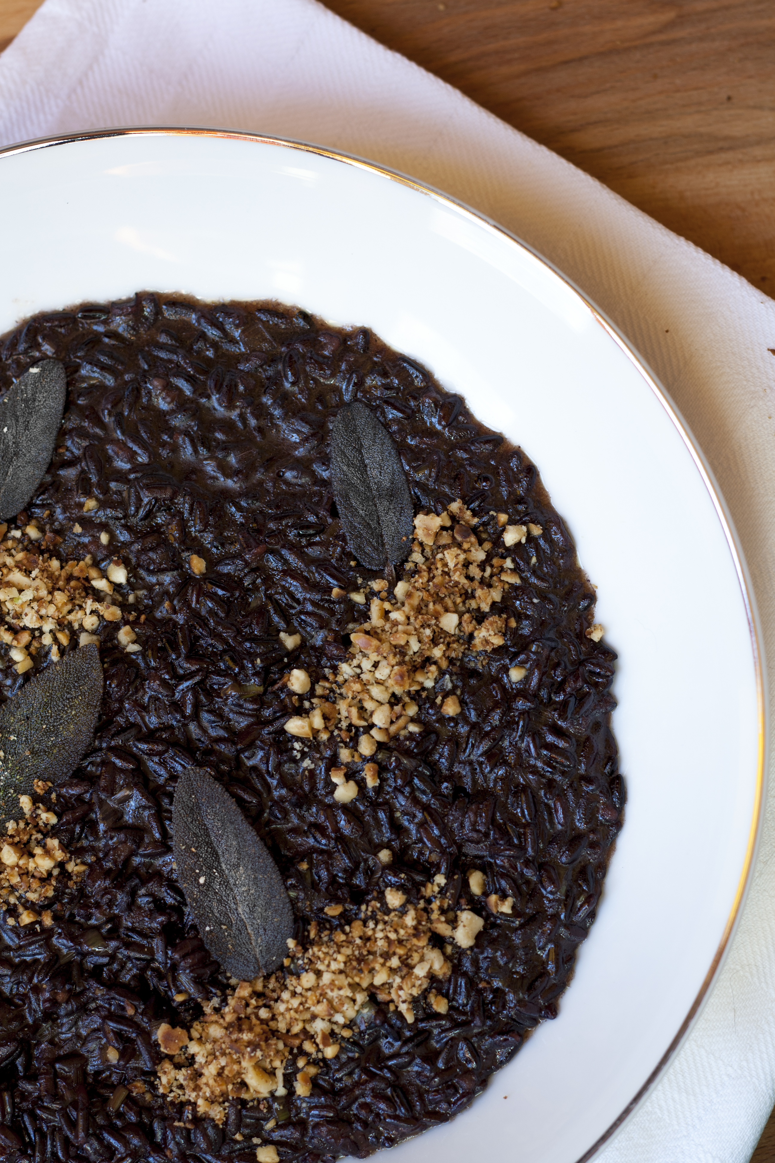 Stiamo parlando di un risotto (adoro prepararli e gustarli) di Riso Venere, crema di porri, nocciole del Piemonte (un po’ di tradizione della mia terra fa sempre piacere) e salvia croccante.